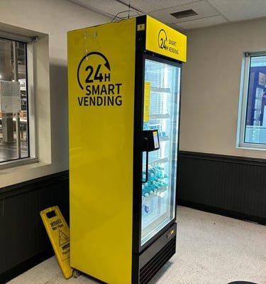 We place AI-powered vending machines at locations blending sleek design with seamless cashless functionality.